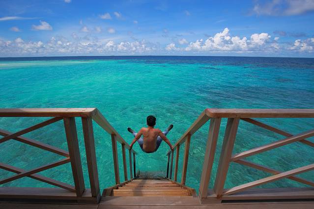 因为在这里你可以什么也不用想,甚至什么也想不起来,因为在这里你只需静静地躺着,让头脑放空,让一切烦恼琐事像指缝间的流沙般溜走。因为在这里你可以享受湛蓝的海水、和煦的微风、葱郁的植物,夜晚繁星满天,在海浪声中入睡;清晨被第一缕阳光和鸟儿的啁啾唤醒。因为这里是一岛一世界,一屋一天堂的蜜月圣地,因为这里是真正的潜水圣地,因为这里也是个即将消失的国度,所以不能择一城终老,那就择几晚歇脚吧。