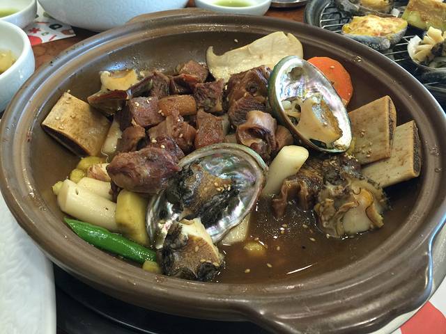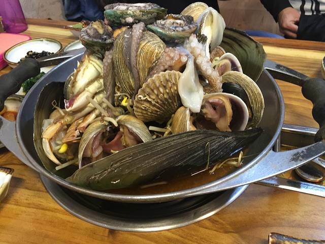 三姓穴海鲜锅——海鲜真的很新鲜,章鱼和鲍鱼还是活的,端上锅还在动,然后半生不熟的时候就会被服务员用剪刀尸解,过程是有点。。。不过为了好好报答它们,一定要好好享用才行