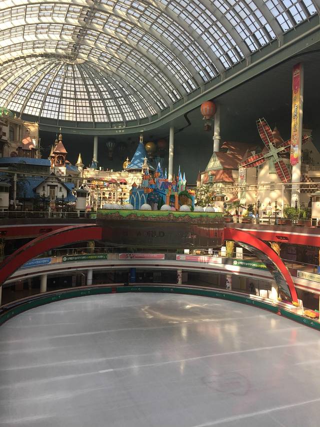 乐天世界:地铁2号线过江,蚕室站3号出口,沿路走就到了。在乐天世界里待了整整一天,从早上九点开始营业就进去了,一直到晚上,18点还去溜冰场玩了一会儿。在这里提醒大家,从乐天世界下地下二层到溜冰场,需要到出口找工作人员签个字,溜完冰之后还可以凭票回到乐天世界,溜冰场的价格是5000韩元/人,进场必须戴手套,不能租只能买,600韩元/双,当然自己带也可以~~~