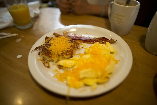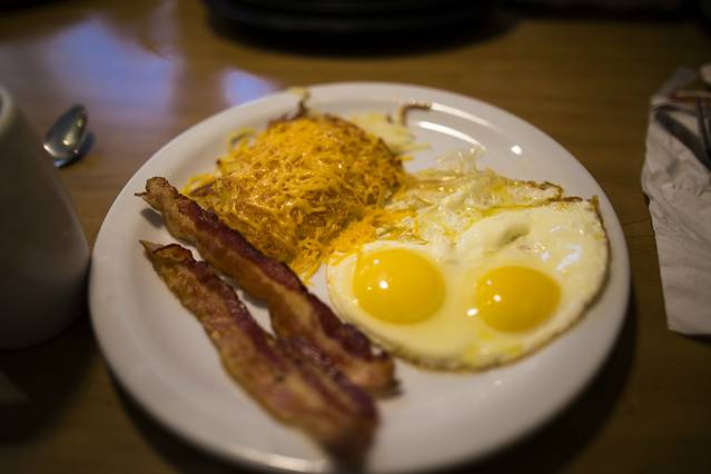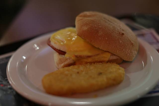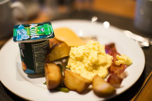 几乎每天早上都是吃这些,面包,煎蛋,培根,烤土豆。还拿了个酸奶。