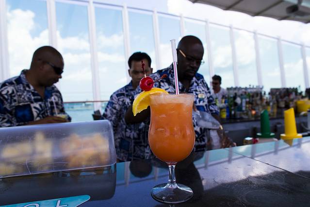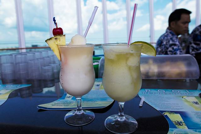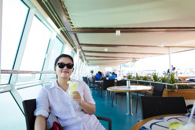 房间还在收拾,不能马上入住,于是跑到酒吧点了鸡尾酒喝,庆祝登船。