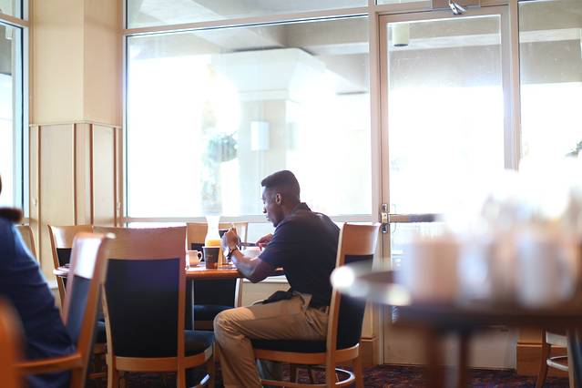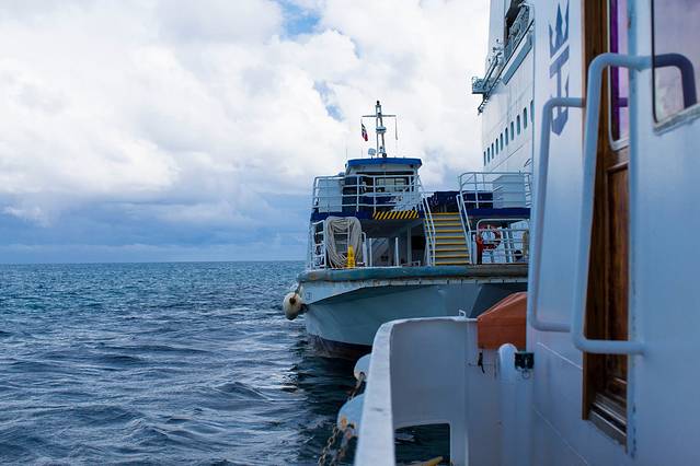 吃完早餐出来,船上来了好多海鸥。有位粗心的客人把早餐留在了桌上,引来海鸥啄食,有只海鸥还叫了它的同伴一起过来吃,真的是用叫的,最后弄得地板上到处都是,工作人员看到的时候脸顿时就黑了。