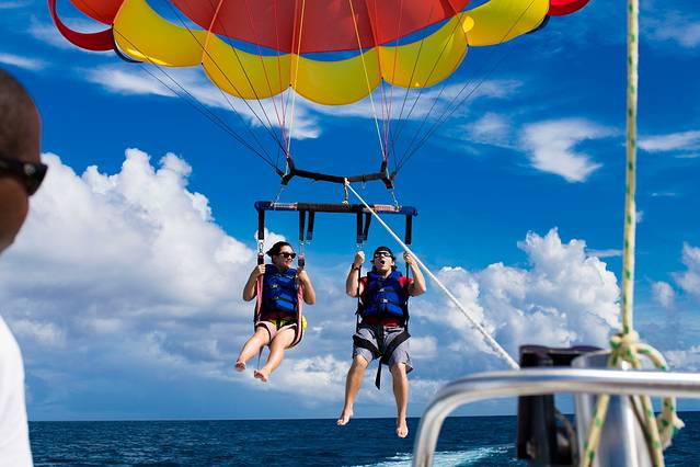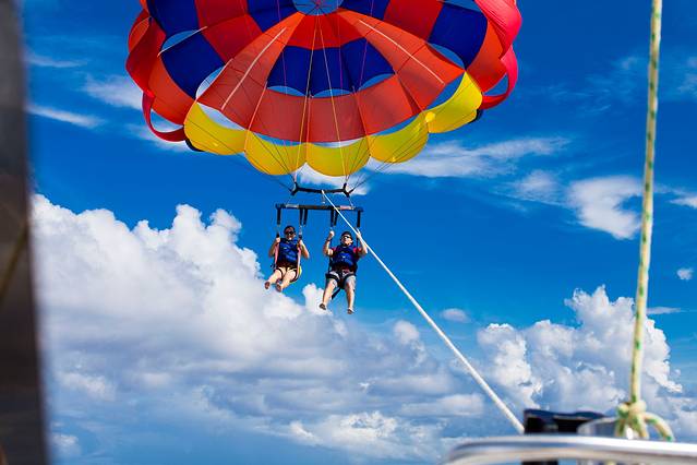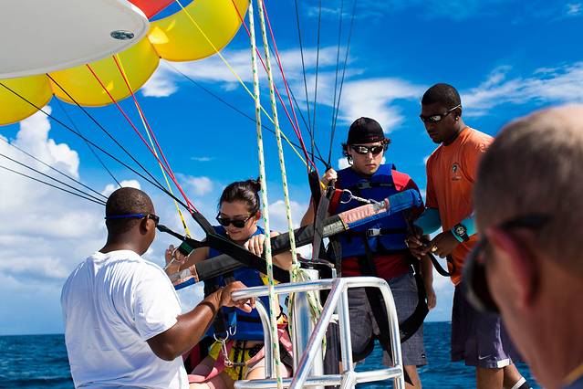 吃完早餐我乘坐第一趟渡轮,因为我报名参加了我最想坐的拖伞,75美金一人。