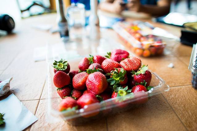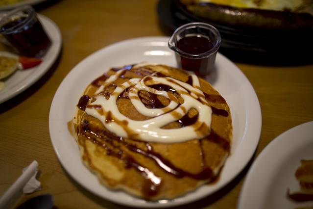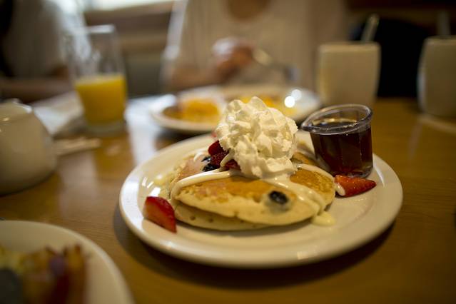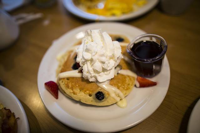 蓝莓pancake, 配上奶油很美味,但是不用糖浆已经很甜了。