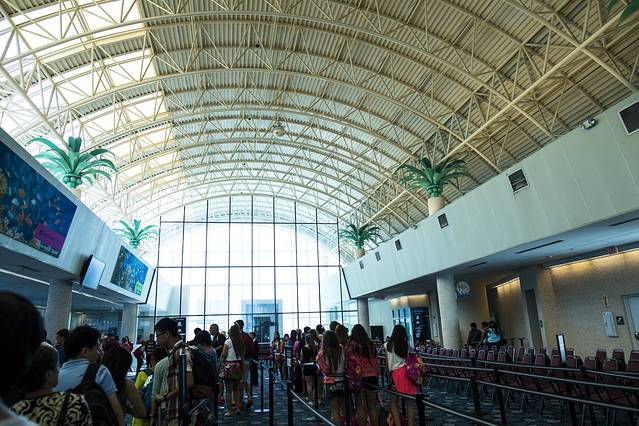 我们选择的是南航从广州直飞LA,然后再转奥兰多。 由于南航晚点50分钟,害得我们差点没有赶上去奥兰多的航班,还好随行了一位VIP,去哪里都是VIP,我们拿到了fast pass,不用跟硕大的人群一起去排过关的队伍。 而且本来以为要推着行李去转机,没想到出关后就有工作人员帮我们扫描行李,然后直接托运。 国内机场的服务还是要稍微差一些。