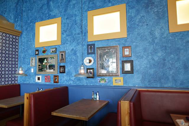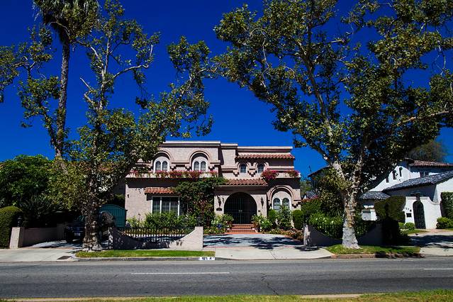建筑色彩缤纷,蓝色,黄色,后面还有粉色。