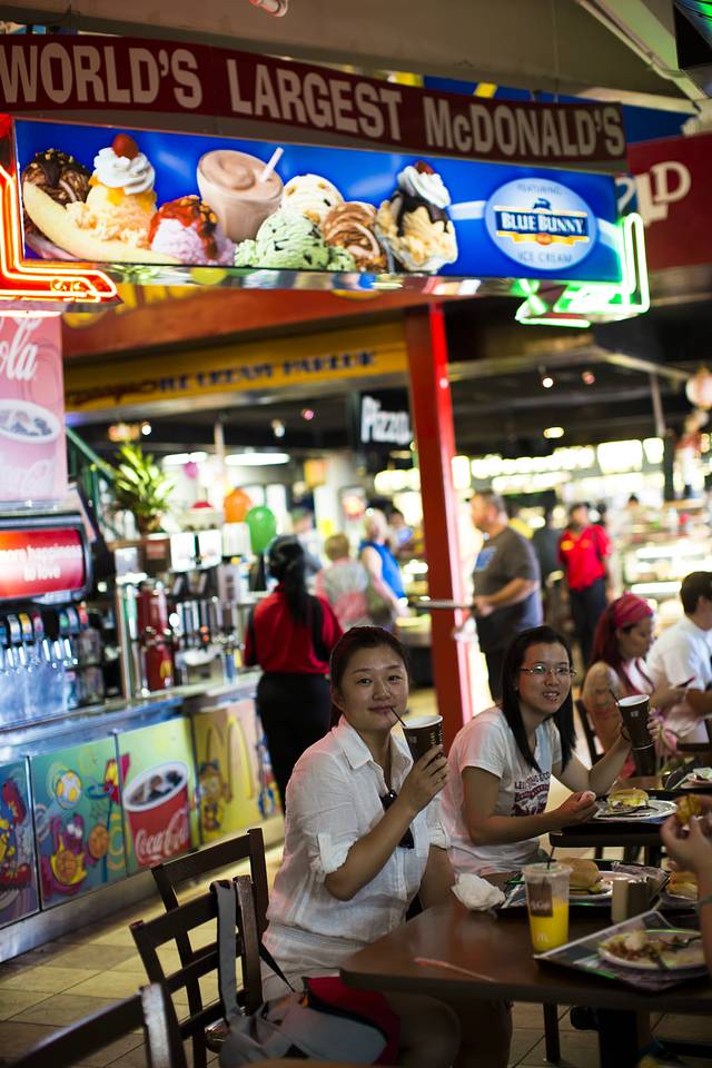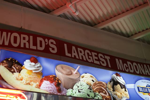 看这招牌,世界上最大的麦当劳。 不光卖汉堡,牛排甜点什么的都卖,跟一般餐厅没区别
