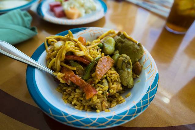 有西班牙海鲜饭和炒面,配着辣椒酱让我胃口大开。 这里居然有正宗的四川辣酱。