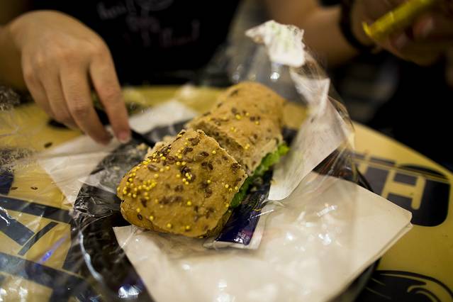 味道不敢恭维的全麦三明治。就算在飞机上吃得少,比较饿,也对这个提不起胃口来。