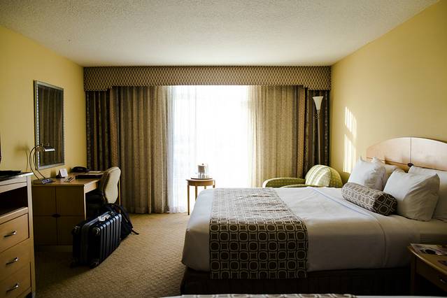 我们住的是crown plaza, 房间不错,标间单人床都有这么大,很软。 老外很喜欢软床,但是对脊柱不好。 我们客户判断酒店房间好不好的最大标准就是床软不软。