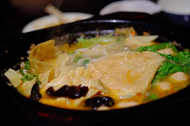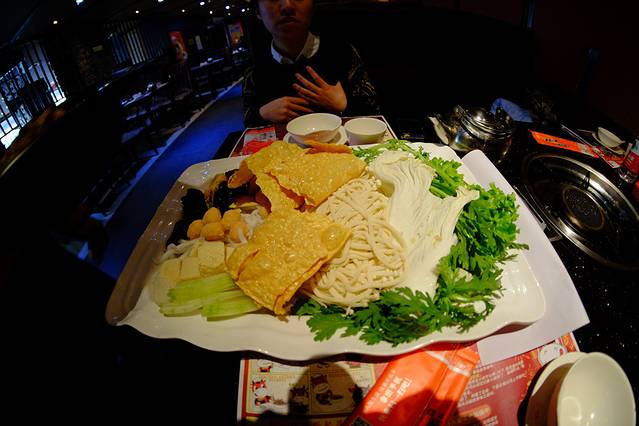 锅刚上来时,服务员会推荐你先喝汤。因为刚上锅汤比较清淡,煮一会之后,汤会比较油。