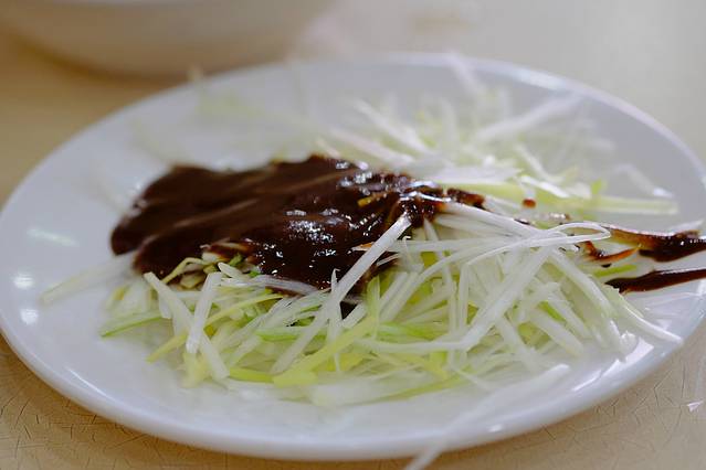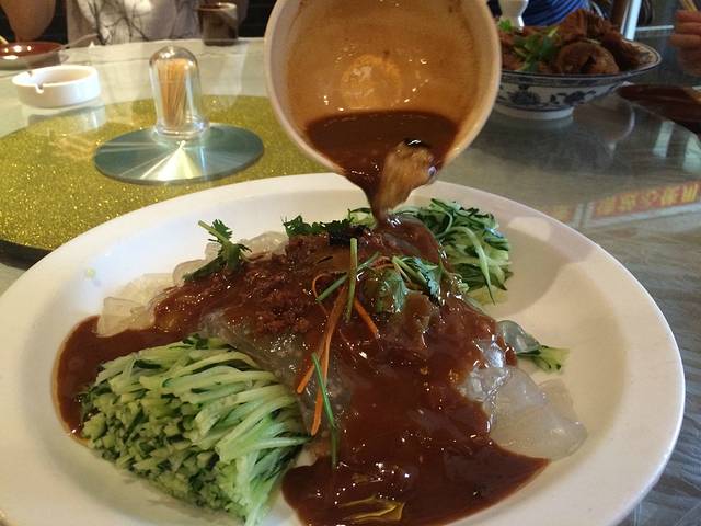 慕名而来的沈阳美食top3,实际吃过之后的实际感觉是,并没有什么太特别的。难怪土著小伙伴都说没吃过的话去试试可以,吃过会觉得很一般。实际口味来说,饼略带一点甜味,油油的。最佳吃法还是把肉、肚丝、酱、葱丝夹在饼里一起吃。单吃的话味道都比较淡。然后一楼店面环境如同很普通快餐小餐馆一般服务态度也能体验到那种代答不理的国营店铺的赶脚。总之一句话,不怎么推荐,但可以试试。就像来趟北京不吃烤鸭总觉得会有点遗憾的。