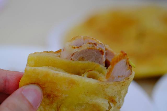 把饼从中间分开,夹入肉、酱、葱丝等味道更佳