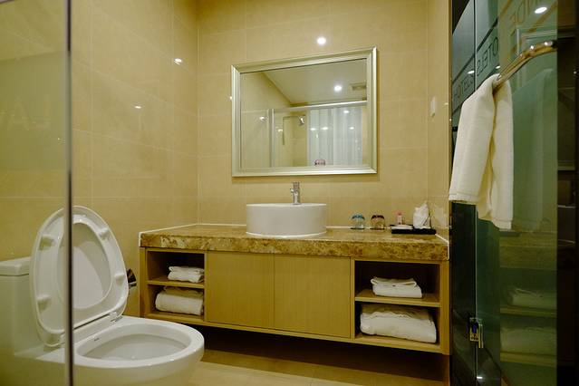 洗浴,酒店的洗护用品采用的是天然植物精华,洗完身上带着淡淡的香气,并且不会像外国香薰那种离老远就会闻到令人刺鼻的香气。淋浴花洒只有一个高位的喷头,热水水温恒定水量充沛。房间没有浴缸有一点小小的遗憾。