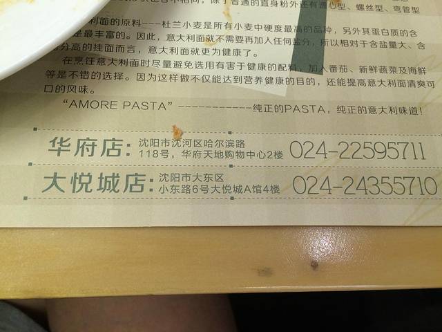 位置在大悦城A馆4楼。 想去的小伙伴们要注意下,餐厅并非全天营业的,只有中餐和晚餐,上午11:30前及下午有两个小时左右不营业,去之前一定要看一下营业时间,以免肚子饿瘪:) 店是小伙伴的前同事开的。为了追求极致的美味店主特意去意大利考察了一番,并请回来一位意大利大厨。味道绝对的地道。高峰时段不预留座位的,从侧面也能看出店铺的火爆程度。当然,因为有小伙伴的关系,我们还是享受了一把VIP的待遇,给我们预留了座位。