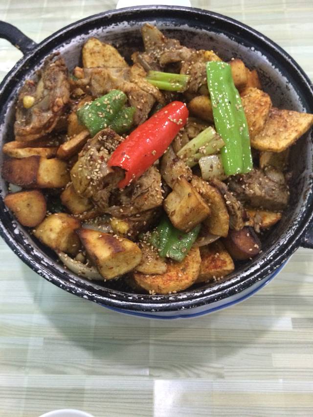 十点左右到这家青旅,位置看上去复杂,实际上挺好找。很温馨,有特点的一家青旅,老板挺逗。推荐楼下一家叫冶氏炕锅的店,我们点了一个鸡羊合炕,88一份,分量挺大,里面有土豆和洋葱、甜辣椒,鸡肉和羊肉。一起用铝锅烧成,香辣,有点咸。很好吃~