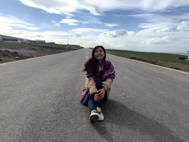 我们十点多从青旅出发,司机师傅说现在去塔尔寺可能会来不及,可以最后一天回西宁的时候去,于是我们直奔青海湖。途中的日月山、倒淌河都没什么意思,我们就直接跳过了。午饭吃的川菜。两点多到青海湖,师傅问我们要不要买门票,门票100,进去坐船船票120。我们都觉得买门票没什么必要就采取第二种方案——从当地人自己开设的入口进入,还价为10元一个人。但这时候天气多云,青海湖和一般的湖泊没啥区别,湖面灰蒙蒙的。玩了一会后,我们又奔向了今晚的客栈——莲度假客栈。这家客栈是2014年开业的,面向青海湖,设施很新很齐全,我们住的六人间,床上还有电热毯,用处非常大,这是后话了。办完入住,我们走出门,惊喜地发现老天放晴了!客栈门前就是一条公路,少有车过,我们几个女生便肆意地在公路上摆拍,天高地阔,碧海蓝天,无人区的即视感让我们初次感受到在草原的欢快。