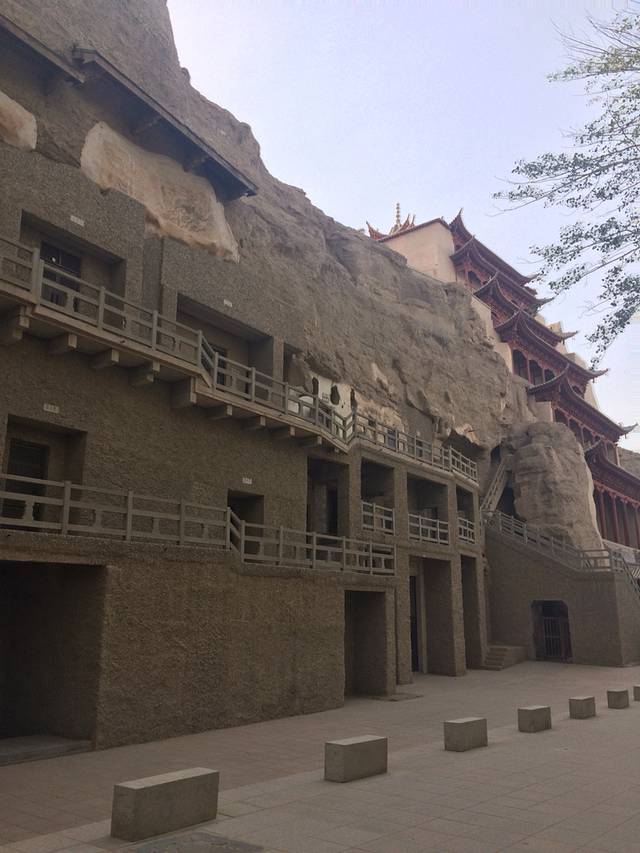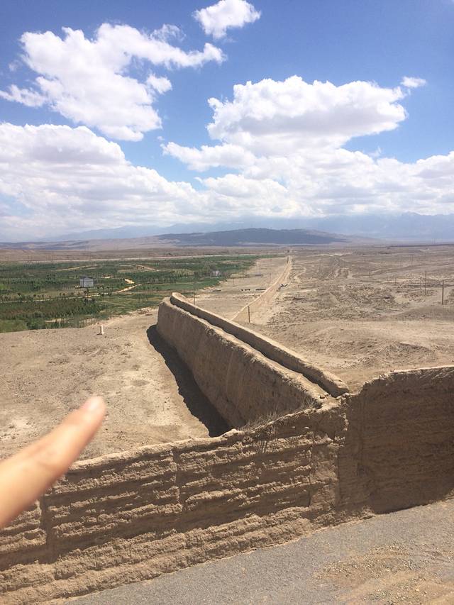 经过三百多公里的行驶,我们从大柴旦来到了此行的又一重点地区——敦煌。沿路风景又变了,山体的植被几乎消失,山变成了光秃秃的大石头。有时还可以看见沙丘。这里的温度也高了很多,大家都换上了夏装。敦煌第一站就是玉门关。这个景区包括小方盘城遗址和汉长城。小方盘城遗址是一个简单的四方的建筑,在我眼里就是个土堆。。接下来驱车十多公里到了汉长城,好吧,这就是一排土墙。。随便拍个照大家就离开了。