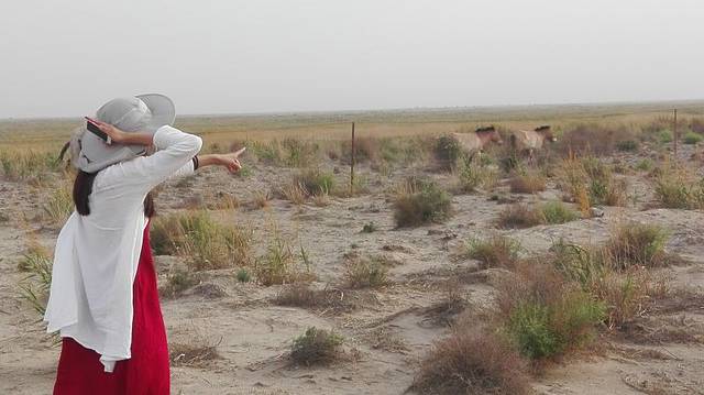 回去的时候经过了一个普氏野马自然保护区,竟然看到了野马!听李师傅说这种野马是按家族活动的,一个家族里只能有一匹公马,平时很少见到的哦~缘分呐!