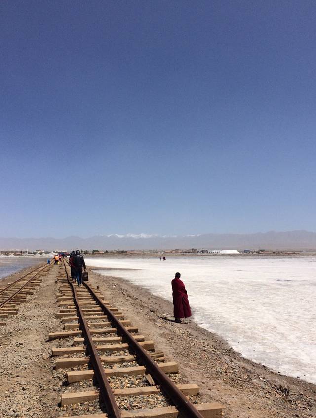 上午两个小时车程到茶卡盐湖,在门口买了25元学生票,这时远远地就能看见盐湖上方弥漫着白白的雾气。进入茶卡盐湖景区内后,可以看到很多盐雕。本来我们几个女生看了很多网上的照片,对茶卡盐湖的天空之镜的惊艳很期待的,可是到了发现也只是白茫茫一片。沿着小火车的轨道,我们深入盐湖,湖面大部分是干的,有好多大大小小的洞,后来一个悲催的小伙伴不小心踩到,差点掉进去。。盐湖上拍出来的有倒影的照片,原来都是在盐湖有水的地方拍的。我们怎么拍都看不出倒影,司机师傅说,能拍出那样的照片要靠运气的。。寒风凛冽,玩了一个多小时,我们出来吃了旁边一家兰州蒸汽牛肉面,红烧牛肉面加蛋,蛋很好吃。吃完接着赶路啦~