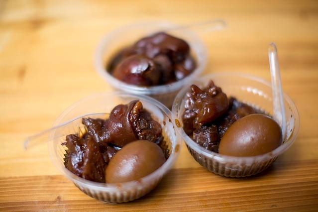 走了不久,就碰到家小吃店。本着吃货的本质我是不会放过的。 每人来了一碗猪脚姜。这里的猪脚姜是整个小洲村最便宜的,只要6块一碗。后来我们看到其他店,有卖8块10块的,都没有看到这么便宜的了。
