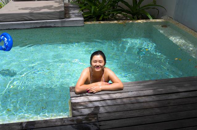 吃完又在游泳池边玩了下。自己拍的时候才知道人家那些在池边的照片简直就是用生命在凹造型啊。。。