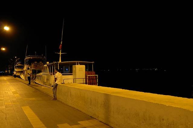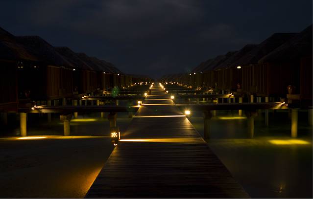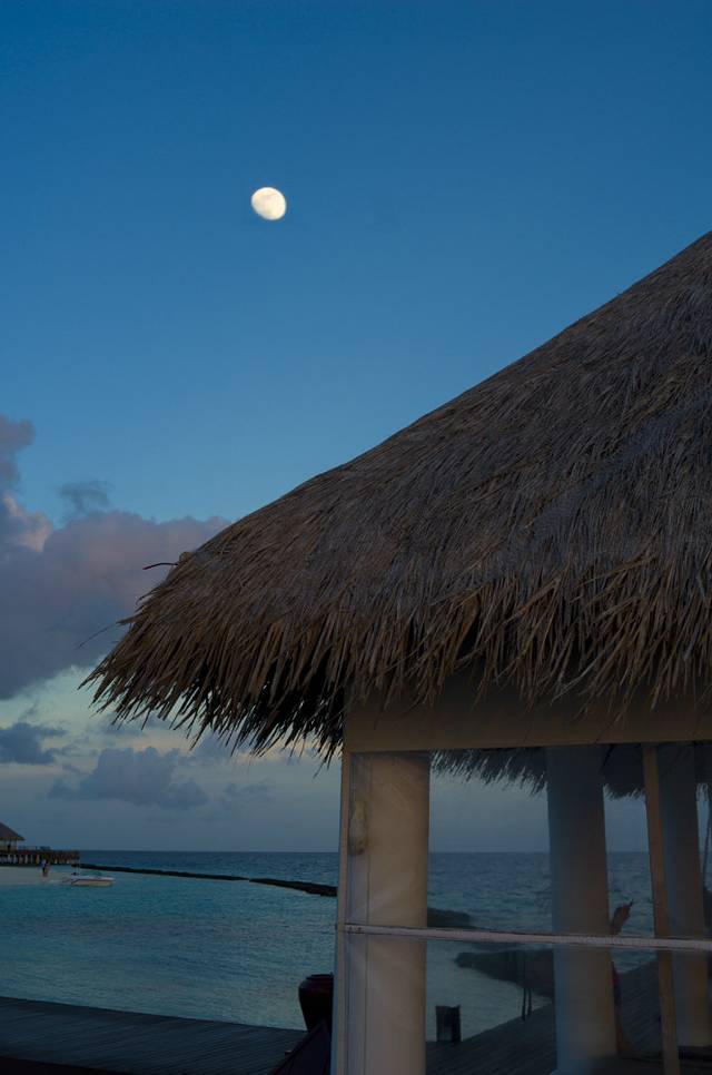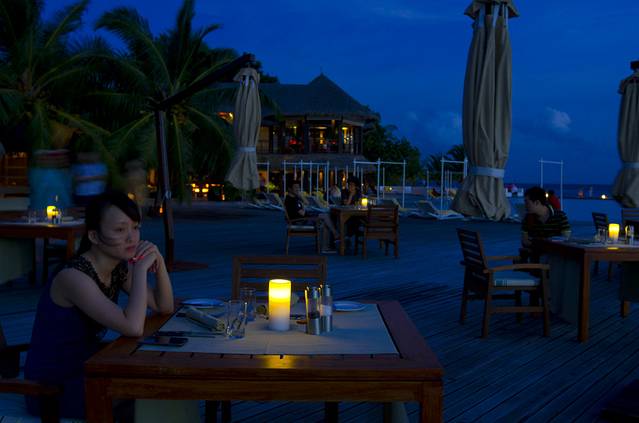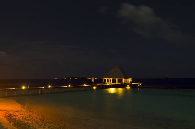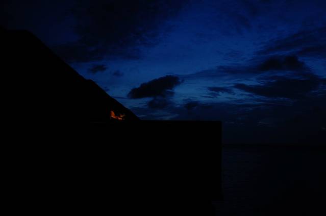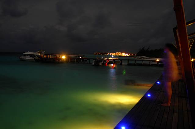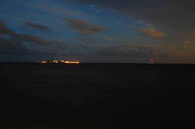 一直很想拍的码头的夜景。 没想到还有人在里面值班。而且他还没有在睡觉或者玩手机,是在很认真的填什么表。 他主动跟我打了招呼,我就问他是不是整晚都在这里,他说是的。顿时心里面觉得好感动。 一整夜都不会有船来岛上,但是还是会安排人在那里守着。在我拍月亮的时候,另外一个可爱的小黑也来了,给小冰箱里面添饮料。他们都是5点就起来工作了,一直要到晚上10点半。远远的望着Air餐厅里面也是人头窜到,大家都开始工作了。 现在才早上5点半。