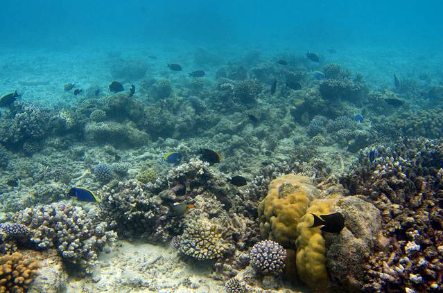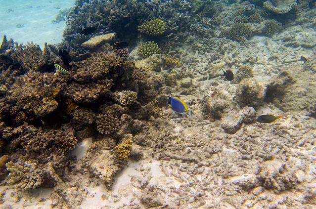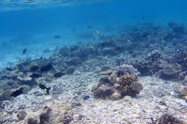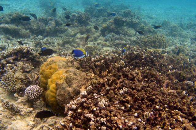 水下还有很多珊瑚和鱼,偶尔还能看到条大的,五彩斑斓的鱼