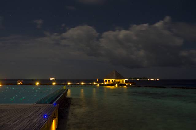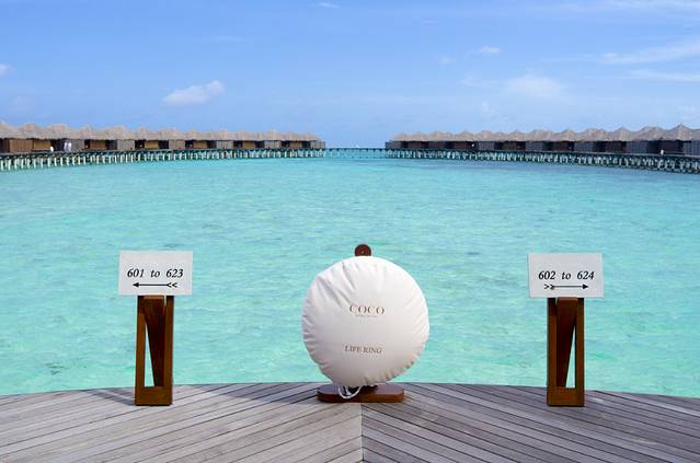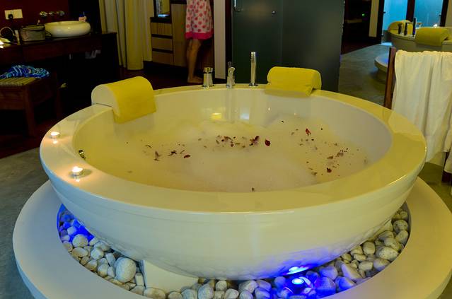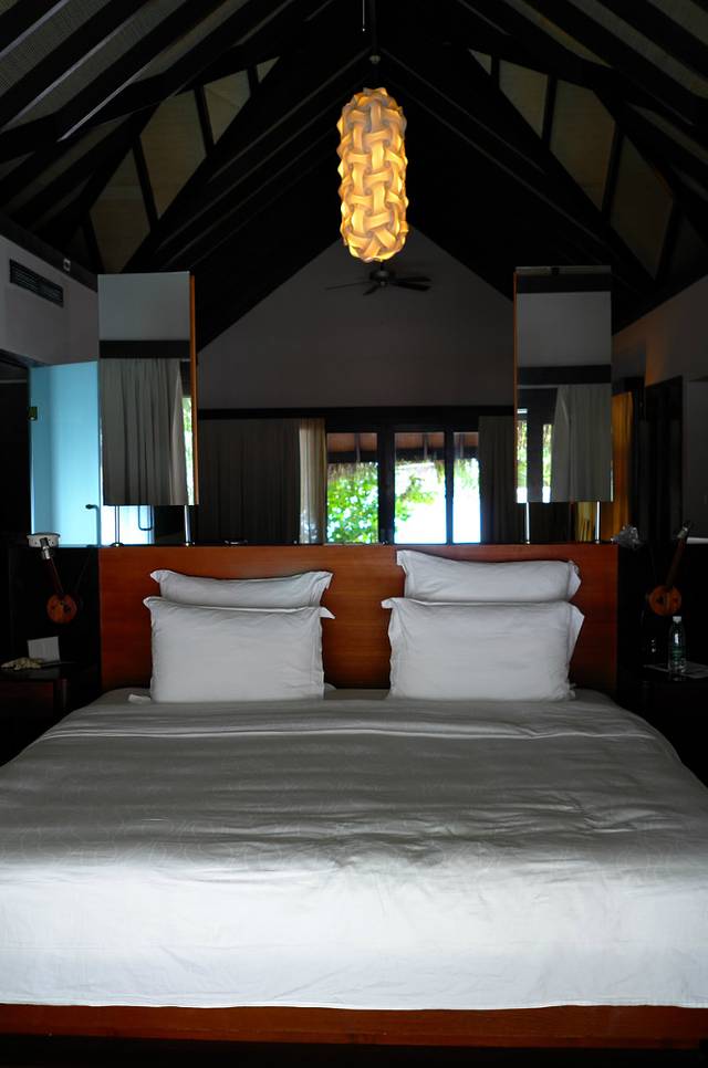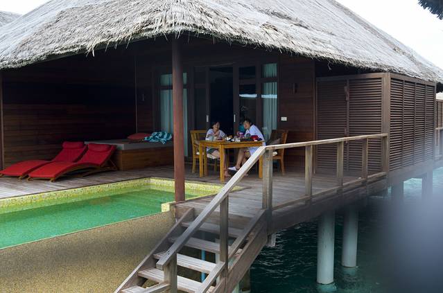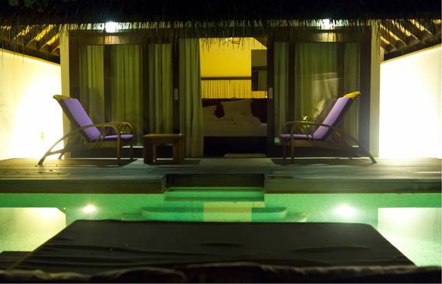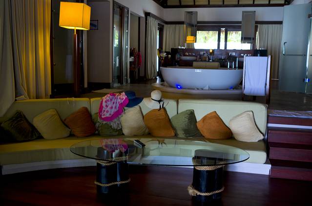 我们订的是两晚沙屋两晚水屋。 Coco palm的沙屋是出名的大,有188平米,我只对那个圆形浴缸有感觉。说实话我更喜欢水屋一点。