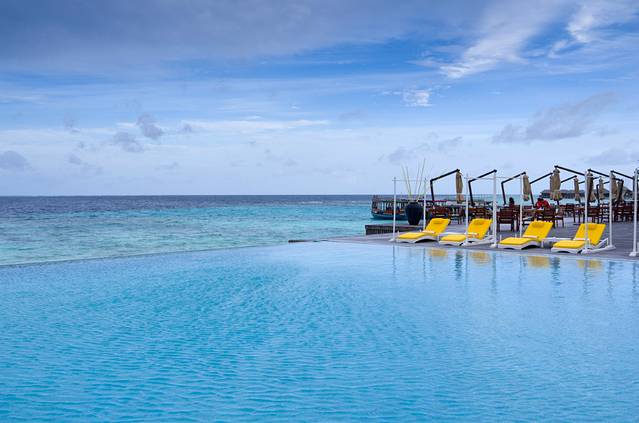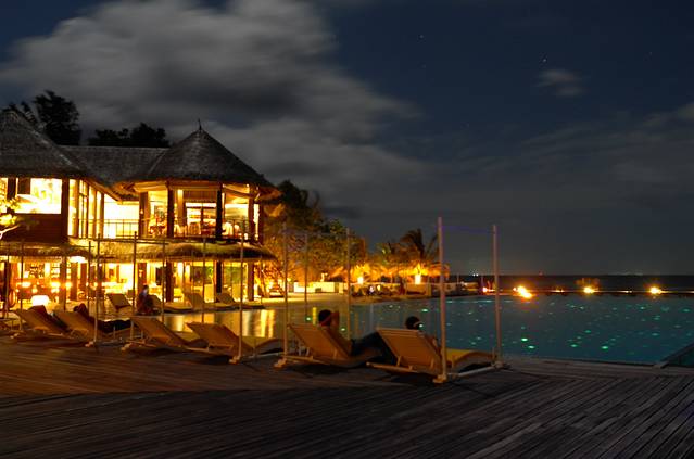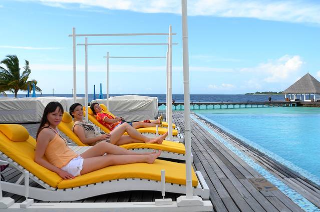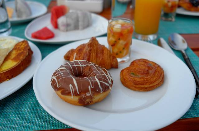 吃早餐的时候,大多都是国人在用餐。老外都是比这个点晚基本一个小时才来吃。Air旁边是longtitude酒吧,酒吧上面是Tsuki日本餐厅,外面就是游泳池,每周5会在游泳池边办鸡尾酒会,不过我们周4就离岛了,没有机会参加了。