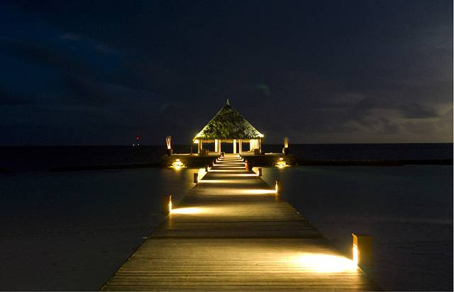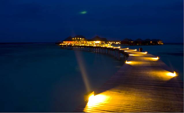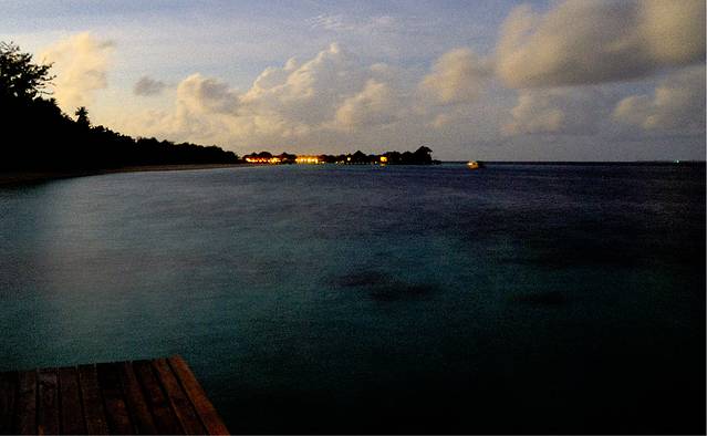 船带着我们飞快的在黑漆漆的海里穿梭着,离机场和马累越远,灯光就越少,什么都看不到,只有经过附近的岛时可以看到一点点灯光。上船的时候小黑给了一人一张薄荷味的冰毛巾,好舒服,还问我们要不要喝饮料,不过我们都喝不下了。 风浪好大,船被抛起又落下,我的屁股很遭罪。