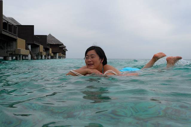 回到房间不久,就听到外面传来水声。原来隔壁两个去玩水了。我们也跟着跳了下去。