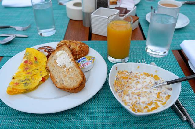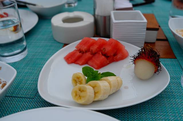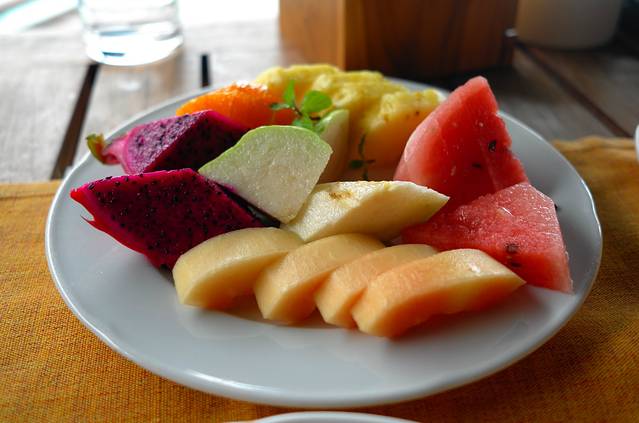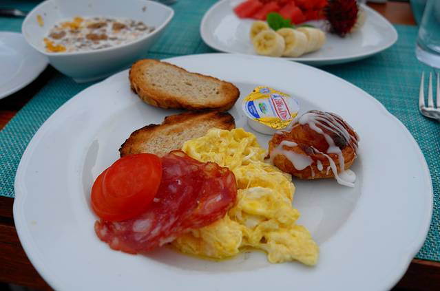 早餐我觉得最好吃的还是烤面包抹黄油加煎蛋,我每天早上都会吃这两样。当然水果也是不错的。火龙果比广州的甜好多。 但是很奇怪有木瓜没有芒果。