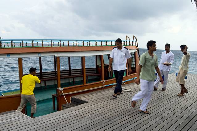 垂钓是58刀一个人,还要加10的服务费和8%的税。 马累和机场的税是6%,BH岛上是8%,稍微贵了一点。考虑到所有的物资都是从外面运进来,贵点就贵点吧。 花园浮浅从第二天到我们走的最后一天都是满的,我们只能考虑自己包一条船出去。小黑给我们的报价是300刀,我们给小黑说帮我们少点,我们会给他小费,于是他说去问下经理。 过了一小会,他出来跟我们说,一口价 250刀,我们一听,楞了。。我告诉他250在中国不是个好数字,248好不好,小黑一点都不愿意少了,一刀都不行。于是我们4个250就定了这次浮潜。