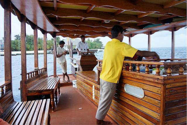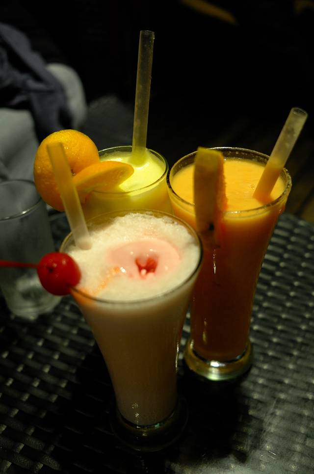 当我们还在找到组织的安心中,小黑马上就告诉我们一个坏消息,今天晚上风浪大,天气不好,船要晚45分钟。他把我们带到了机场旁边一家小咖啡馆,跟我们说所有饮料都可以免费点。于是我们就都要了特色水果奶昔。味道不错,一边吹着海风一边喝奶昔,期待着到达Coco palm的那一刻。