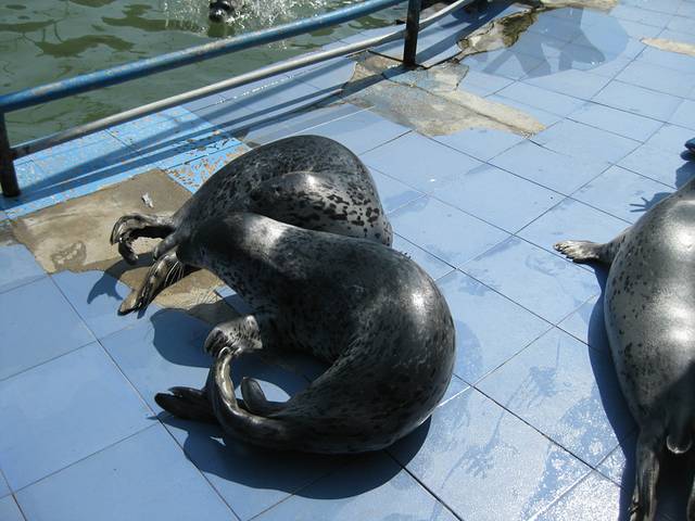 月牙湾旁边有个海豹池,可以买鱼喂海豹。海豹特别聪明,看到人拿着鱼就全围上来,不停的拍胸脯,意思是说:我饿了!
