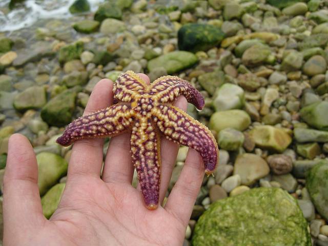 走在石头滩上随处可看到退潮后,静静躺在地面的海星