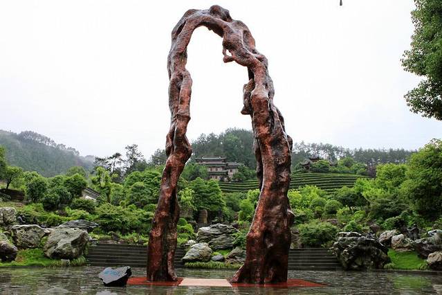 进了大门就是一个拱形的树雕,这个根雕好像是一个门,所以被称之为福门吧!