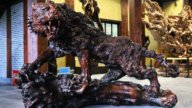 这儿的根雕有两个特点,一是单个根雕的块头都很高很大很重,高的有五六米,矮的也有一米多;重的有八九吨,轻的恐怕也有几百斤。
