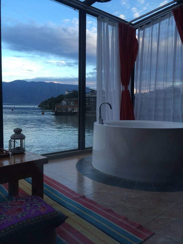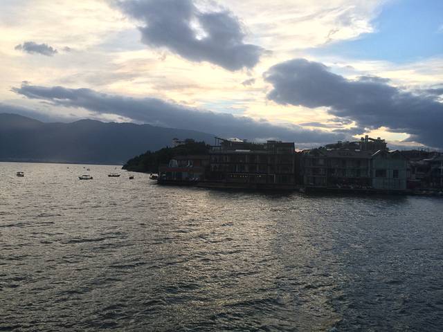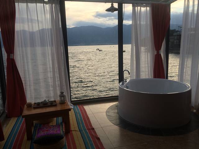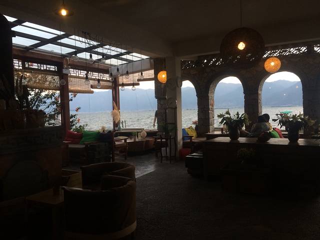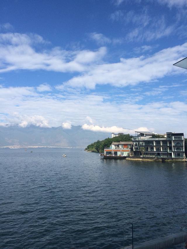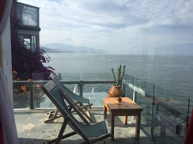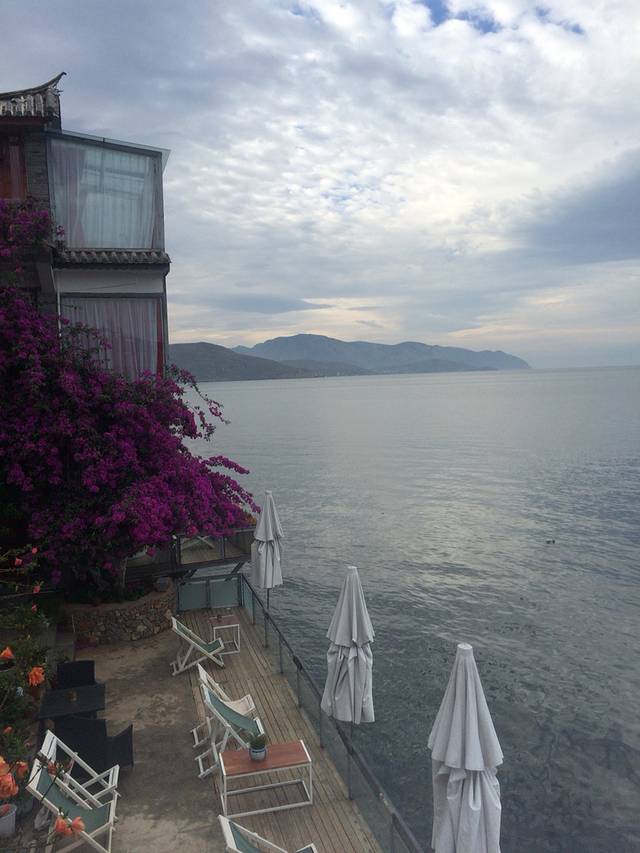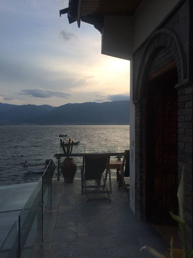 这家店的卖点真的在于它优越到极点的海景房,服务不敢恭维。960一晚的海景房,玻璃房设计,文艺气息十足的客栈前台和开放式院子,洱海极致的美,使得心情得以舒爽,但酒店真的可以说无服务可言,两晚住宿没有打扫,早餐不提供,装修简陋。。。。尽管如此,但住海景房仍是必须的事,因为真的只有它能让你一睹洱海之美。洱海边没有特别留恋的美食,我们两天都选择海地生活进餐,推荐菜品:彩虹桥(排骨),黄焖鸡,烤鱼,皮蛋拌黄瓜。早餐可以吃砂锅米线,但当地特色小吃饵丝啥的有些吃不惯。当地有一种酸奶叫来思尔简直完败平时超市的那些,很好喝,强烈推荐。杨丽萍的月亮宫太阳宫可以游船时看看,不需要门票,但也谢绝入内参观。