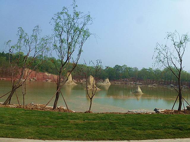 公园内大部分景区还在修建之中,这些树木也是新移过来的