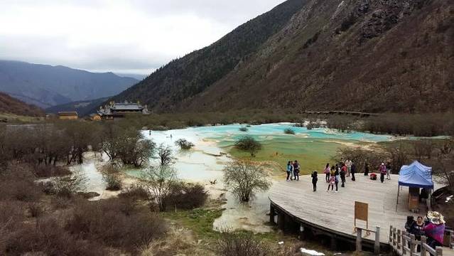 黄龙沟给人感觉宁静秀美,木栈道两边的原始森林还有松鼠出没,很宁静空气很清新,这里最适合游玩的季节是七八月份,由于我们是5月份去的,还是枯水期,所以只有五彩池可以看,但是景色依然很美,周围的山上还有积雪!