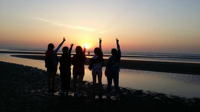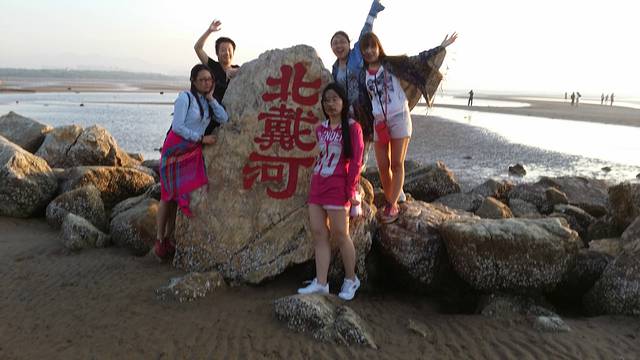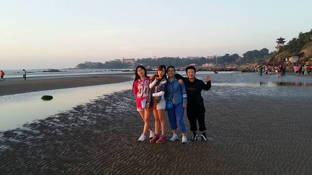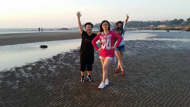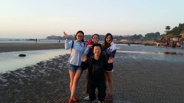 在回公寓的途中我们四人吃了早餐,典型的中国式早餐豆浆加油条,真心地建议大家不要在路边吃,不卫生,最重要的是太难吃了,还有不要认为夜市饭店多就一定好吃,好吃的东西还是当地人最清楚,多问问。还好哪里都有兰州拉面馆,瑶接下来的伙食都是在拉面馆内解决的。回到公寓大家丝毫没有想象中的早起后遗症,重新洗脸涂上隔离,穿上衣服美美哒出门,本来打算去集发采摘园的,坐了5路公交到了门口,由于各种原因还是没有入园,决定去黄金海岸,在门口遇见当地的一个小哥和大叔,最终和他们约好500块的价格载我们5个人去黄金海岸并包括景点门票,大约40分钟左右到了黄金海岸,十点进去景点,又每人买了5块钱的保险。到这不得不说的是,景点外面有很多小店卖吃的,因为早餐吃得太早了,大家都饿了,有个50多岁的老太拉我们去她家买,买的时候方便面5块每桶,她说景区里有免费的开水,进去了之后才发现开水每桶泡面开水竟然收费5块钱,顿时气不打一处来。为了接下来愉快的旅行决定忍了。