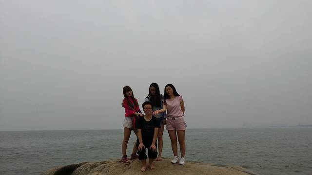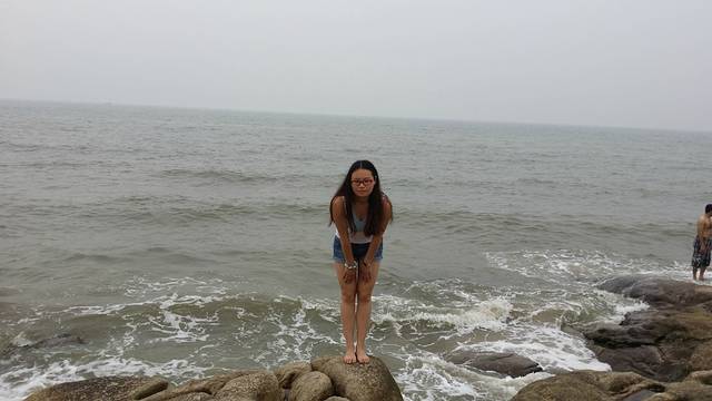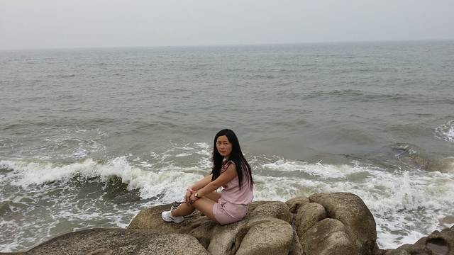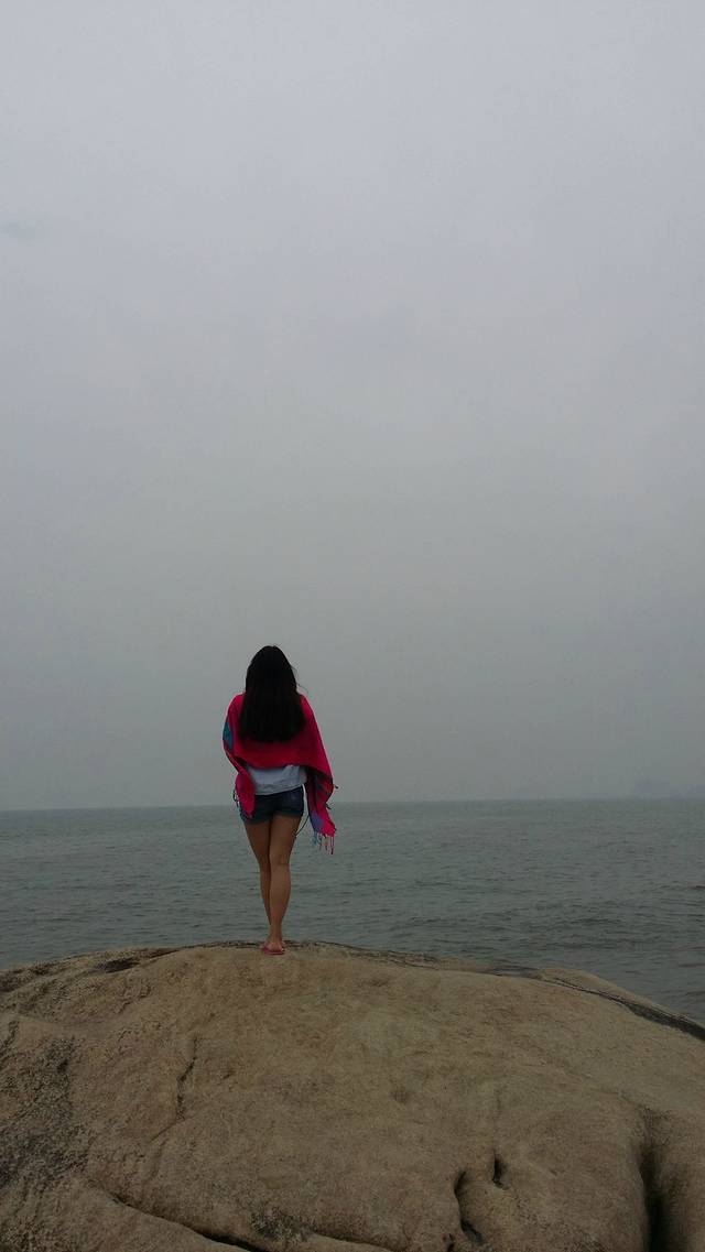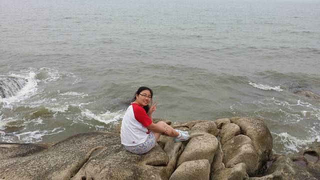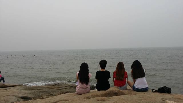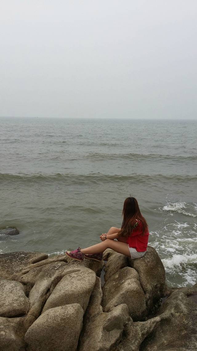 一路上说说笑笑,拍拍美景就到老虎石公园啦。买了门票8*5,进去了就可以看到左侧有很多石头,沙子也还可以,但是没有昨天那么好。因为还早,大家到一个石头上坐着吹吹海风,聊聊天。其实很多时候我的脑子都是放空的.....