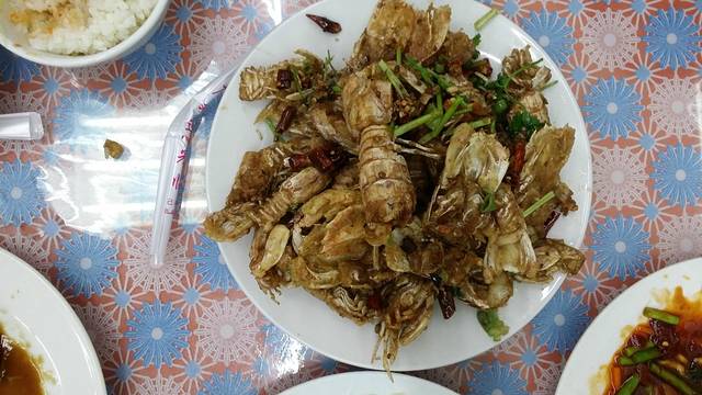 香辣皮皮虾,有好多断开的不完整的,之前就有人说有的饭店会换成死的,但是我宁愿相信只是厨师大叔在炒的时候一不小心用力过猛了。。。