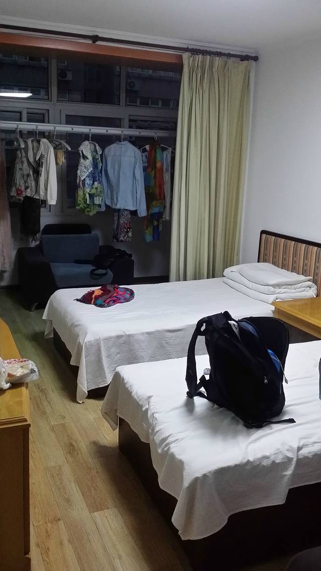 对了,我们是上火车之前就是网上看好了住的地方,公寓的姐姐直接给我们联系好了司机,19:07分我们下了火车,一下车就感觉到了凉凉的空气,瞬间更加期待这次旅行了。出站后第一感觉就是空气真的很好,马路很宽敞又干净,司机大叔在火车站等着我们,直接就去了住的地方。(因为我们都是女孩子,出于安全考虑,每次上车之前都会拍下车牌号)。我们住在刘庄团中央疗养院,住的9号院中青书画院,环境很好,之前电话联系过的姐姐给我们办的手续。还给我们优惠了8块钱,办了两晚的住宿,家庭套房120/晚。和老板问了下鸽子窝的具体位置就上楼先休息了一下。