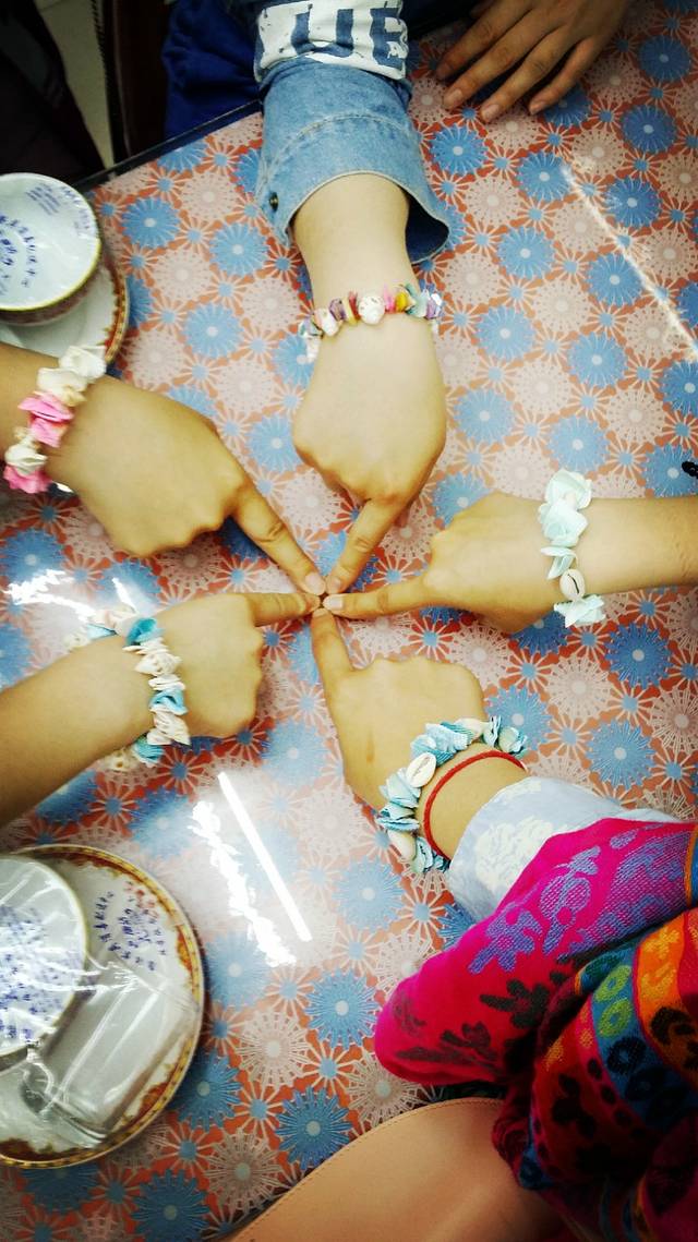 住的地大家都很满意,我们住的是三室一厅,有五张床,很干净,而且卫生间也挺大。价格真是格外的实惠啊~~准备去夜市逛逛吃晚饭,快到夜市前进去了一个工艺品小店逛了一下。里边东西挺漂亮,老板还送了免费的贝壳手链,直接成为我们接下来两天622起来蹬旅游团的信物。