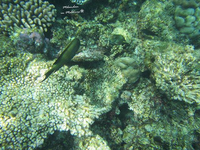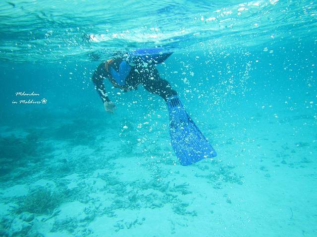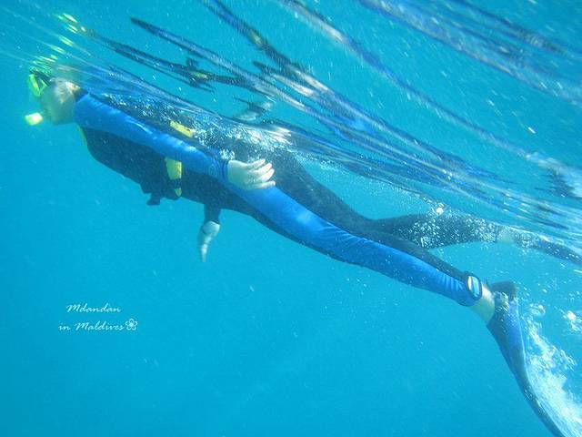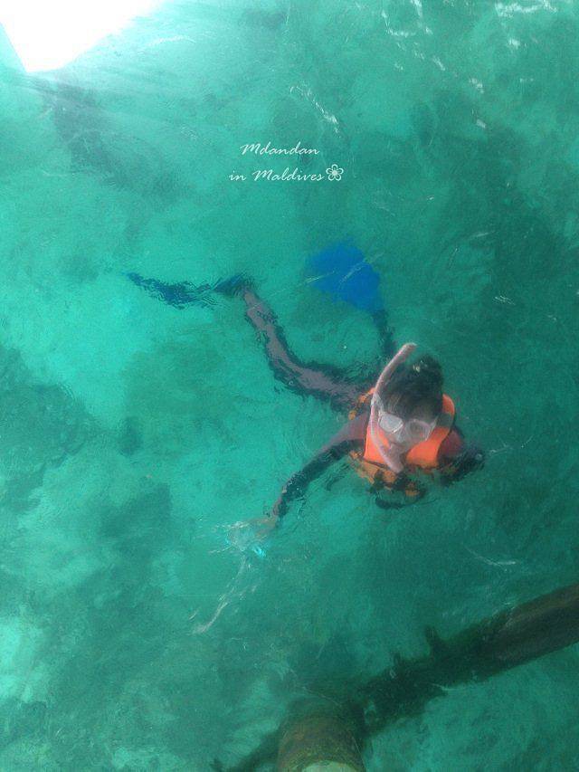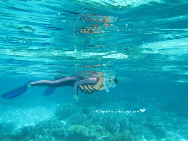 我们实在安奈不住想要浮潜的心情,所以就等雨稍微小一点的时候就下海了。