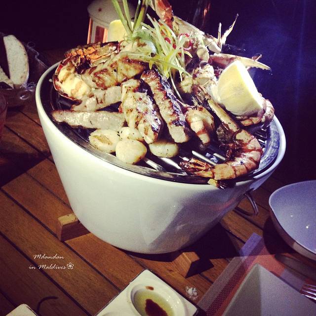 这个就是我们点的双人烧烤大餐,大家有机会去的话要吃这个哦,有龙虾、螃蟹、大虾、金枪鱼等。并且我两还点了开胃菜,主菜,甜点,是每人一份哦小黑就一直再说enough