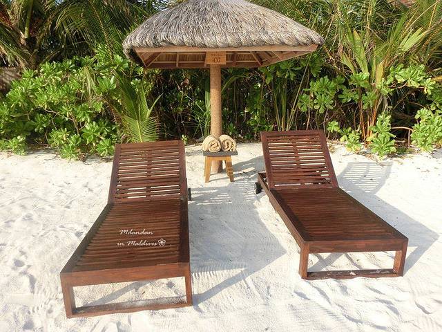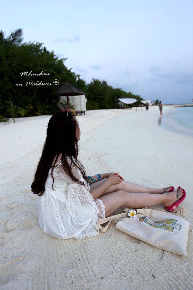 每个沙屋都有自己的私人沙滩,就是这样的,一个人坐在这里看着大海太舒服了,一个人也没有,可以把平时生活、工作中所有的烦心事抛到脑后